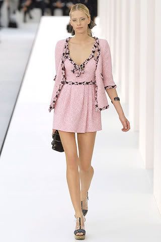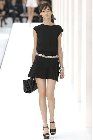Yay! Finally!! Chanel showed its Spring ‘07 line on Saturday. Karl Lagerfeld always manages to give the Chanel line a modern twist while keeping the Chanel chic. This season felt a very “mod” with ultra short dresses and skirts paired with chunky shoes; The traditional black & white palette also lent itself well to the 60s aesthetic. This was by far not my favorite Chanel collection, but there are always gems. Here are my faves . . .